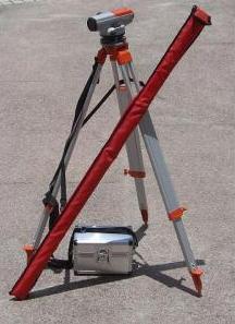 Includes instrument, aluminium tripod, 5m aluminium staff,durable plastic carring case (not the aluminium carrying case pictured), plumb bob, lens cap, operation manual, flannelette and adjusting tools.